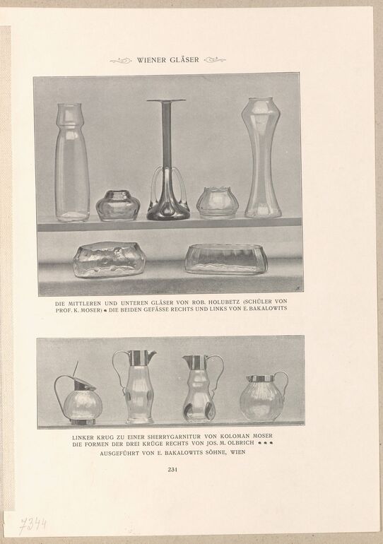 An der Wiener Kunstgewerbeschule kamen den Schülern Mosers dessen Verbindungen und Zusammenarbeit mit etablierten Manufakturen zugute. So ließ er einen Teil der Glasentwürfe seiner Klasse über den Glasverleger Bakalowits von der böhmischen Glasmanufaktur Loetz produzieren. Moser legte dabei ganz im Sinne des Arts&Crafts-Postulats den Fokus auf radikale Formreduktion kombiniert mit modern-einfachen und zugleich wirkungsvollen Dekorationen. Robert Holubetz setzte diese Vorgaben in seinen Glasentwürfen meisterhaft um. Seine formstrengen Glasobjekte sind heute in der Fachliteratur gut dokumentiert.